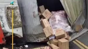 O motorista de uma Fiat Strada, Zenilton, que transportava uma carga de bananas, tentou desviar de um cachorro que atravessava a pista, quando perdeu o controle do veículo.