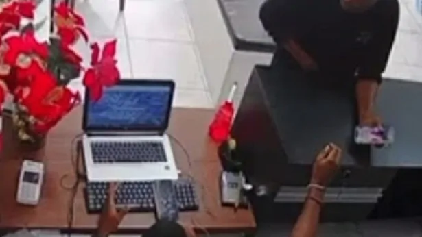 Após a ação, o ladrão saiu do estabelecimento calmamente para não levantar suspeitas. As imagens gravadas por uma câmera de segurança devem ajudar a polícia a identificar o assaltante.